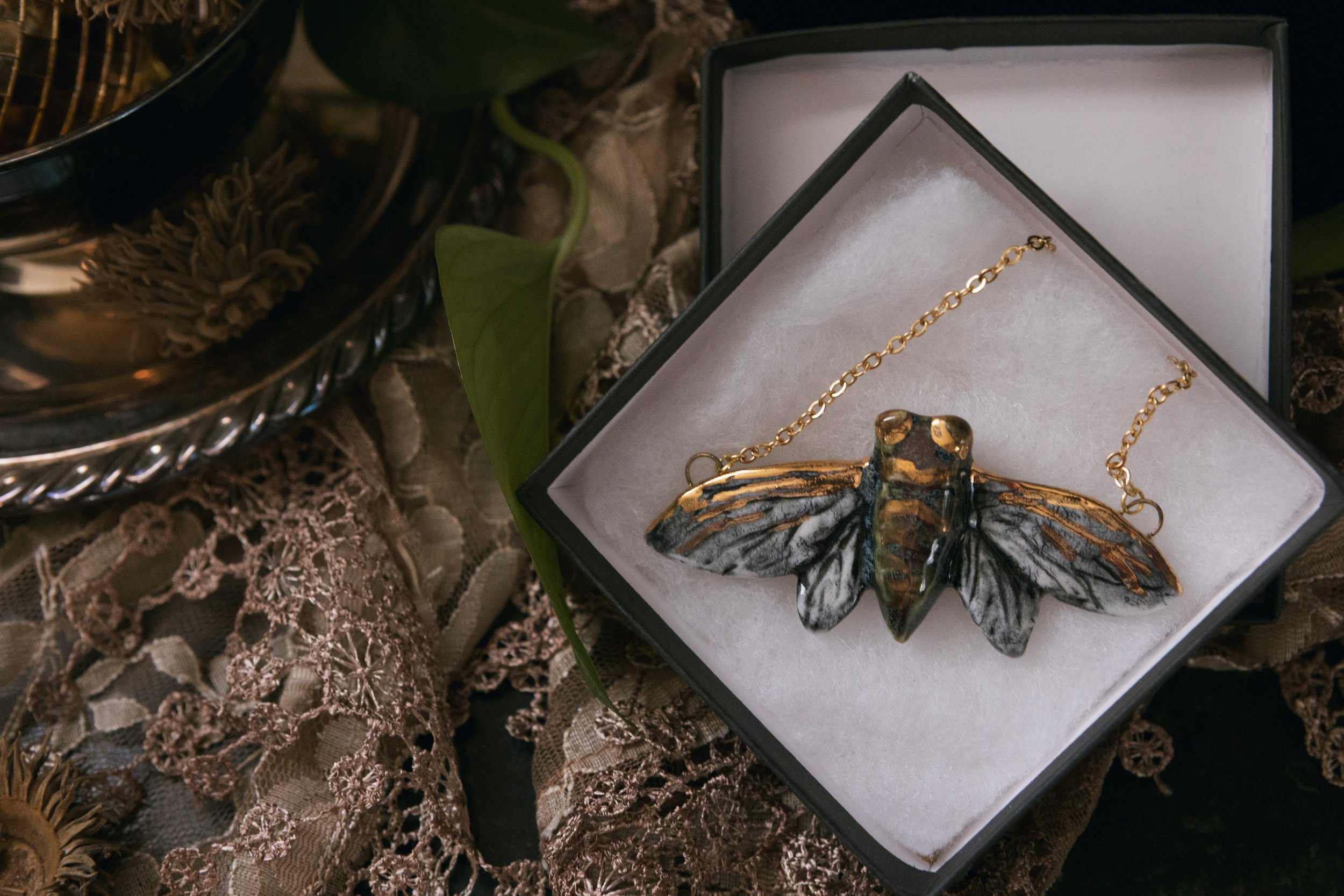 Porcelain Cicada Necklace with 18kt Gold Lustre 6